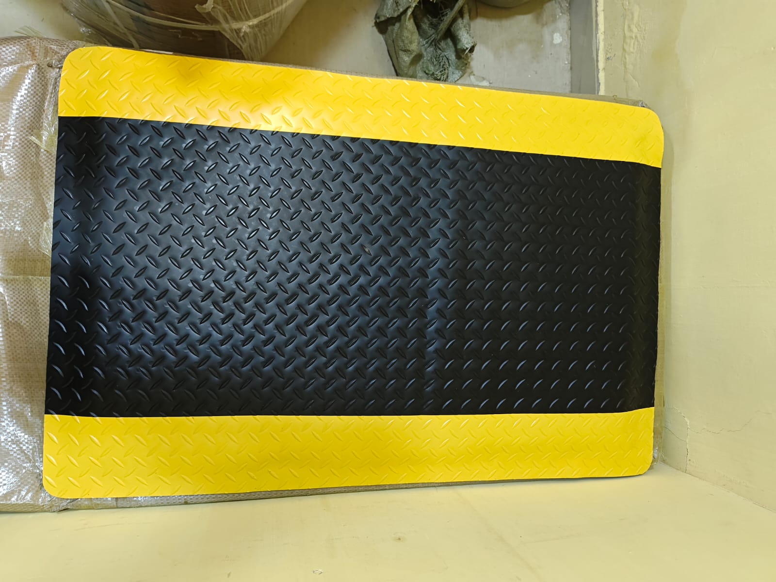 ESD Anti fatigue mat Product specification: Material - PVC & EPDM Foam Thickness - 20 Mm Texture - Industrial Diamond Plate Color - Black and Yellow ESD Type - Surface 10e6-10e9 ohms Bottom 10e4-10e6 ohms Features •3 layer constructure, surface pvc material, middle layer is EPDM, Bottom is PVC Material. •Designed specifically to reduce fatigue as a standing surface. •Provides good anti fatigue properties, improving worker comfort. •Slip resistant and soil resistant heavy embossed texture. •Safe surface for workers, mat stays clean. •Durable top wear layer. •Non-Humidity depenence. •Dimensionally stable. •Minimal shrinkage and curling. •Provides consistent electrical performance regardless of ambient humidity. Applications •Manufaturing plants •Assembly lines •Packing & Logistics warehouses •Individual workstations •Reception desks •Shop counters •Department stores •Banks Industries Aviation, power, warehousing& logistics, automotive, beauty & saloon, institutions, restaurant & kitchen